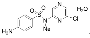磺胺氯吡嗪鈉 | 產(chǎn)品名稱 | 磺胺氯吡嗪鈉 | 別名 | N-(5-氯-吡嗪)-4-氨基苯磺酰胺鈉鹽-水化合物 | 產(chǎn)品類型 | 2.API產(chǎn)品及中間體 | CAS NO | 102-65-8 | 分子式 | C10H9ClN4O2S | 分子量 | 284.72 | 產(chǎn)品圖片 | 結(jié)構(gòu)式 |  |  | 詳細說明 | 磺胺氯吡嗪鈉為白色或淡黃色粉末,易溶于水.含量≥99% |